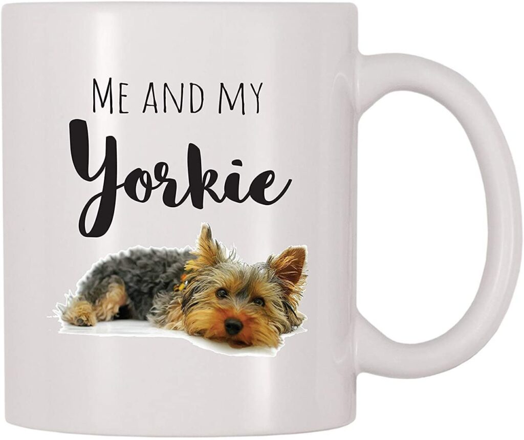 Un Regalo de Yorkshire Terrier, Taza de Café Hecho a Mano por Blue Witc. De color blanco. Perfecta para Café.